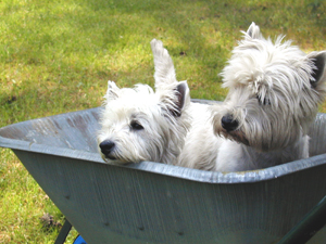 Ihre Annette Pille und West-Highlands Randy und Wally